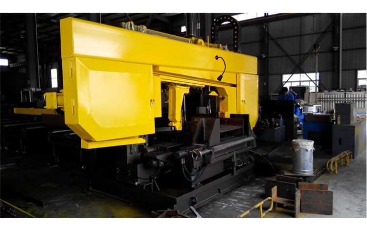 H型鋼是一種常見于建筑和工程用鋼材,因其橫截面形狀類似于字母“H”而得名。它由兩個平行的翼緣和中間的腹板組成,結構強度高,重量輕,廣泛應用于鋼結構建筑、橋梁、廠房、機械支撐等領域。金鋒鋸業(yè)為滿足建筑行業(yè)對H型鋼鋸切的需求,生產(chǎn)了旋轉角度帶鋸床。因為H型鋼的特殊結構在實際工程中需要斜切、角度切割或復雜截面加工,旋轉角度帶鋸床可靈活矯正角度,適應復雜結構切割,是H型鋼鋸切的理想設備。