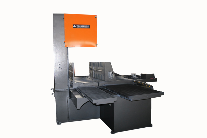 金鋒鋸業(yè)H型鋼專切大型角度帶鋸床型號有BS1000帶鋸床和BS1250帶鋸床。鋸切角度為0°到-45°,鋸床為半自動系統(tǒng),鋸切平穩(wěn)、精度高。鋸床具有合理的鋸帶導向裝置,能有效延長鋸帶使用壽命。搭配大行程電動輥輪料架可快速實現(xiàn)工件移動和定位,減少工人勞動強度,有效提升工作效率。雙抬升缸設計,搭配穩(wěn)固的龍門直線導軌結構,鋸切高效穩(wěn)定。鋸床傳動部件精密平衡校正,能有效減少震動,獨特的液壓系統(tǒng)設計,下降速度平穩(wěn),防止鋸條非正常破壞,達到理想鋸切效果。