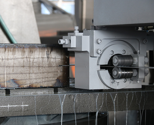 根據客戶的要求,金鋒鋸業為其量身打造了工作臺可360°回轉定位的多功能大型數控帶鋸床,主要解決客戶對有色金屬、中、低碳鋼的高效鋸切。這一臺大型數控帶鋸床GZK10150S采用了雙立柱龍門式結構,鋸切穩定、鋸口窄、鋸切精度高、自動化程度高、節能省力、生產效率非???。